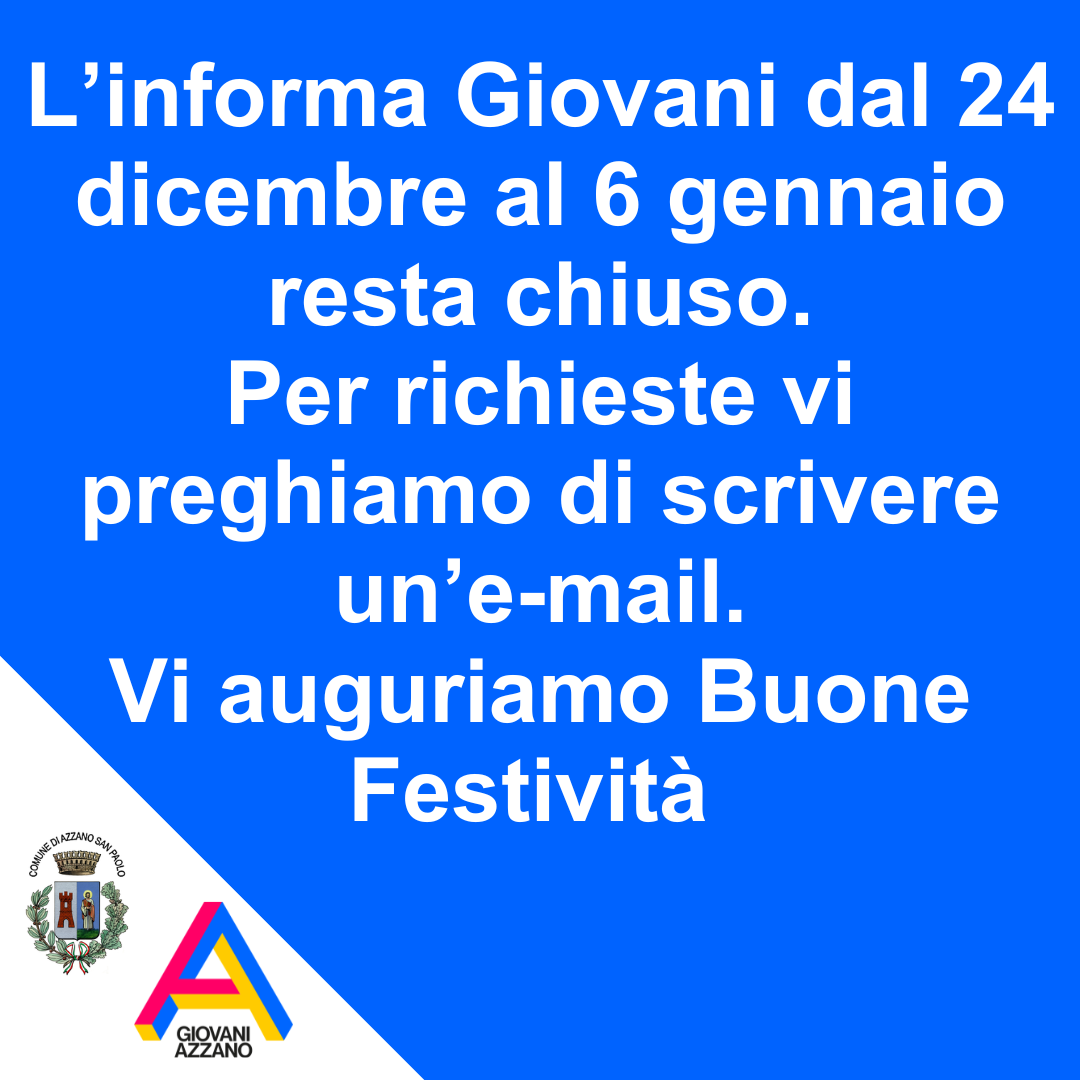 Il servizio Informa Giovani di Azzano San Paolo si prende una piccola pausa per le festività natalizie. Gli uffici resteranno […]
